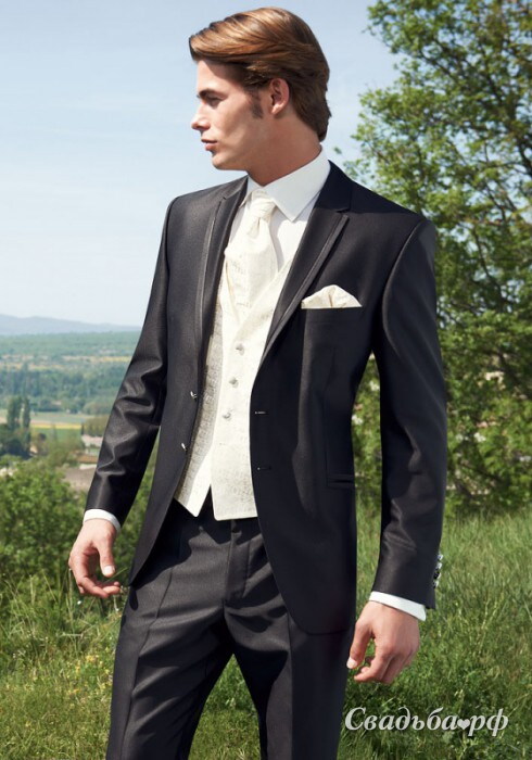 Модель: Marc. На две пуговицы, с одной шлицей и декоративной отделкой по лацкану пиджака.
