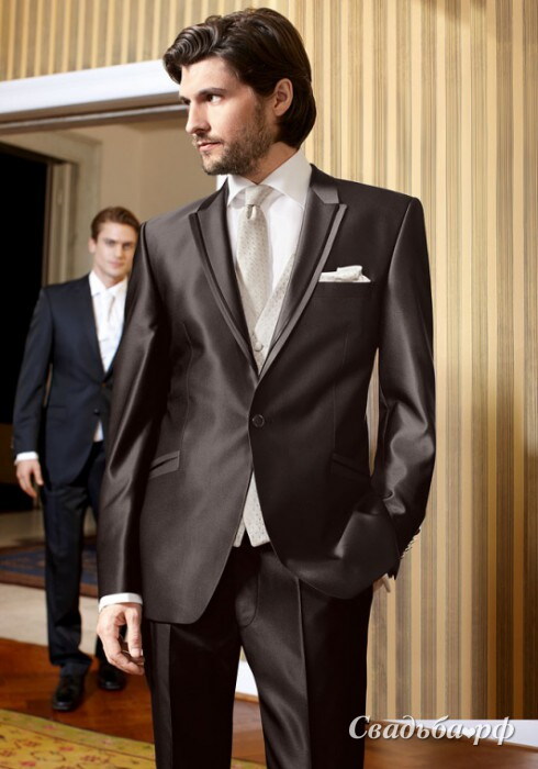 Модель: Alberto. На одну пуговицу, с одной шлицей и шелковой декоративной отделкой по лацкану пиджака.