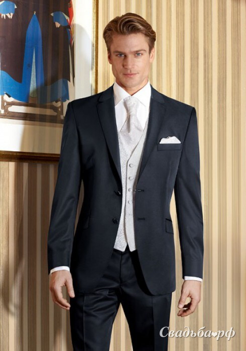 Модель: Rolando. На две пуговицы, с двумя боковыми шлицами и имитацией ручного стяжка по лацканам и карманам пиджака.