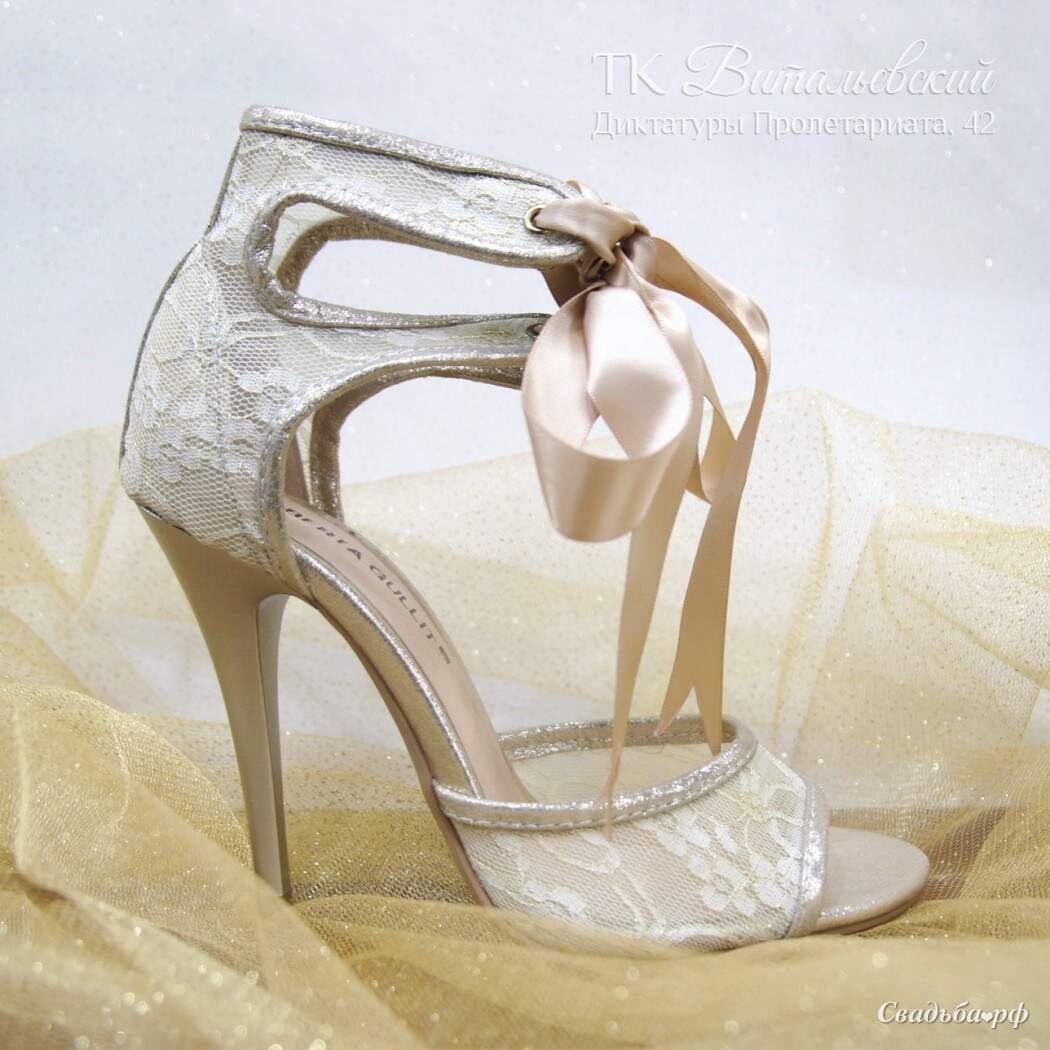 Планируете свадьбу на лето? для жаркого дня можно выбрать босоножки. Чудесная модель из золотистого кружева с бантом для неординарной невесты!
