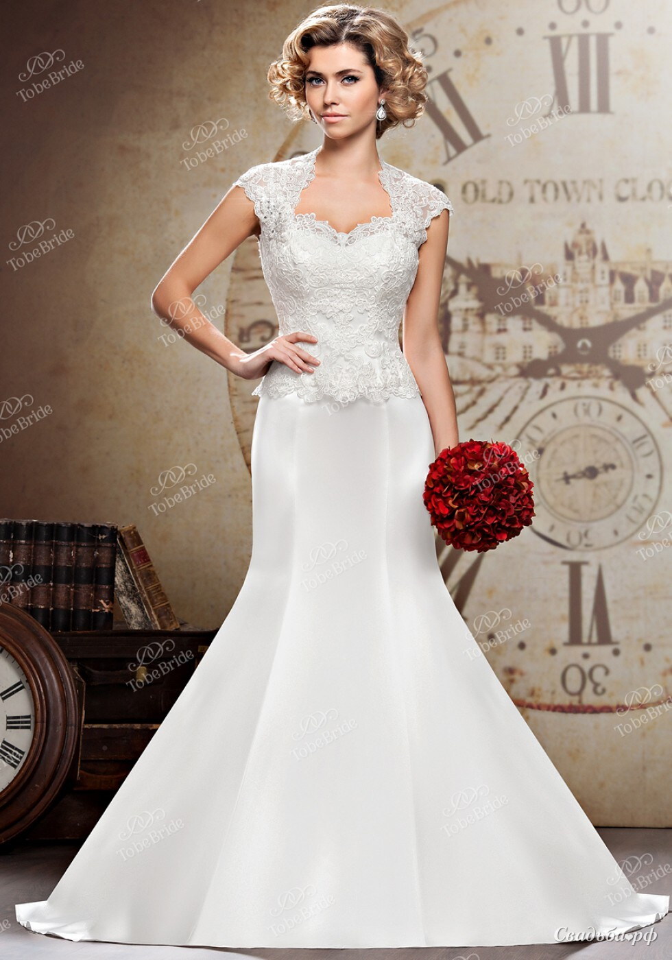 Лаконичное атласное платье, подчеркивающее все изгибы тела, и кружевной жакет с длинными рукавами, застежкой на атласные пуговички и фигурным вырезом на спине – этот тандем способен покорить любое сердце! Живое воплощение любви!